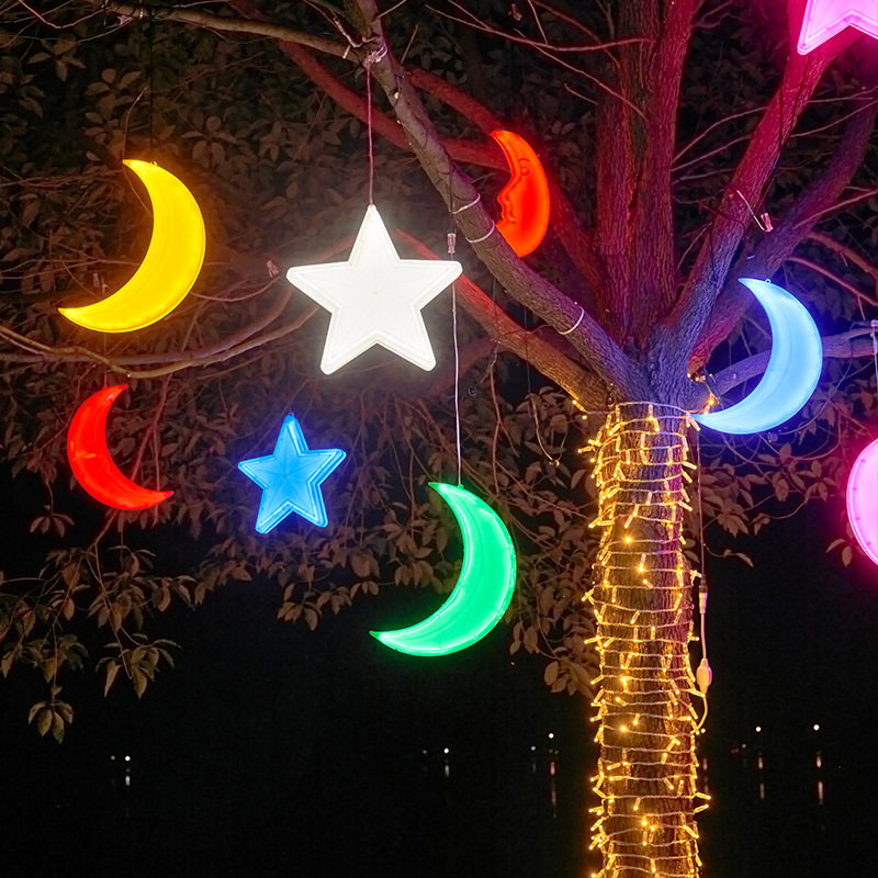 led发光月亮灯户外防水中秋节树木亮化装饰灯挂树月牙灯五角星灯