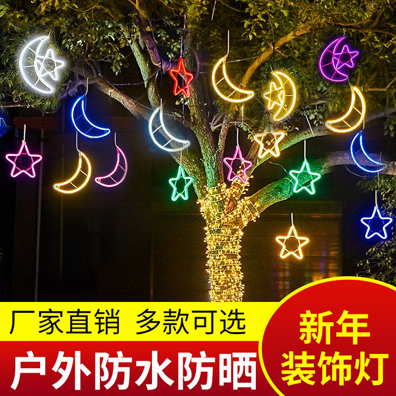 发光led月亮灯 节日氛围灯装饰灯户外简约圣诞灯五角星树木亮化挂