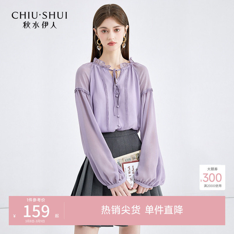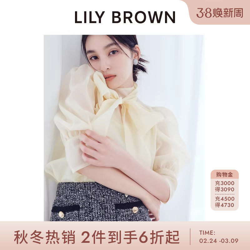 LILY BROWN秋冬款甜美蝴蝶结系带微透雪纺衬衫LWFB254057