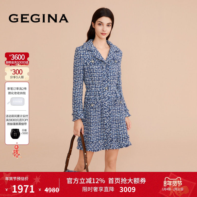 GEGINA吉吉娜女装新品进口牛仔花呢连衣裙格子奢华高级感裙子