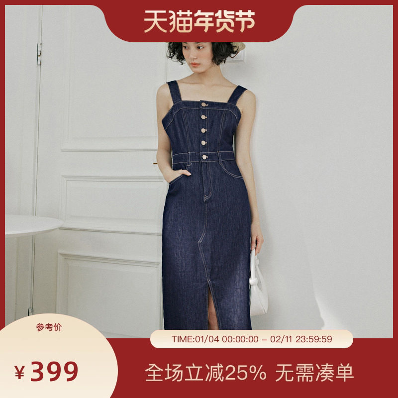 太平鸟女装吊带牛仔连衣裙夏新款修身法式无袖裙时尚小众连身裙潮