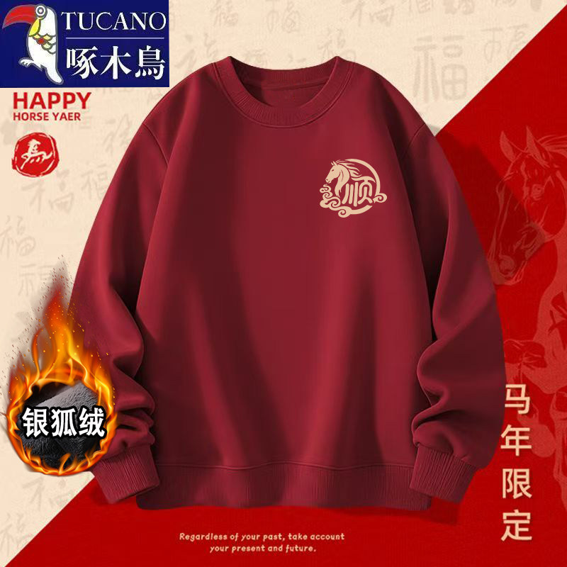 - 大红色卫衣