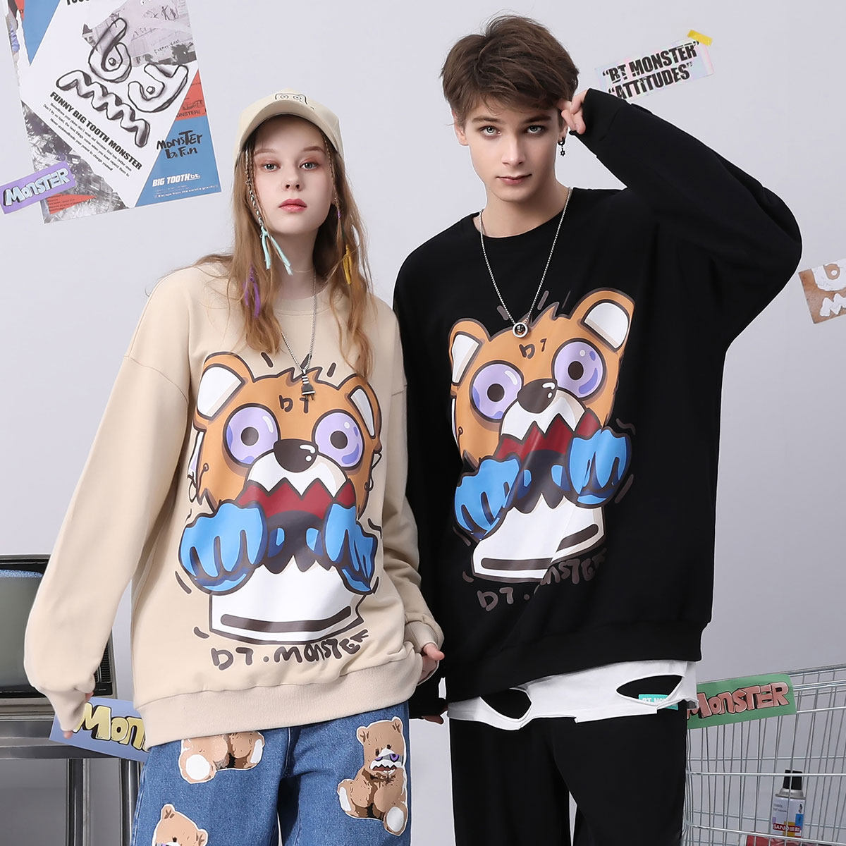 - 加绒宽松情侣卫衣