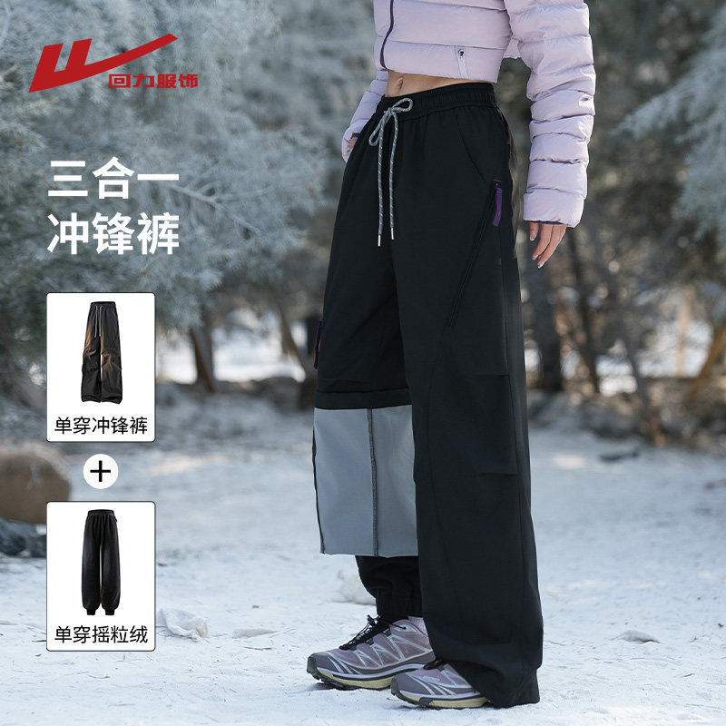 回力三合一工装冲锋裤男冬季2025新款加绒厚户外三防登山运动裤子