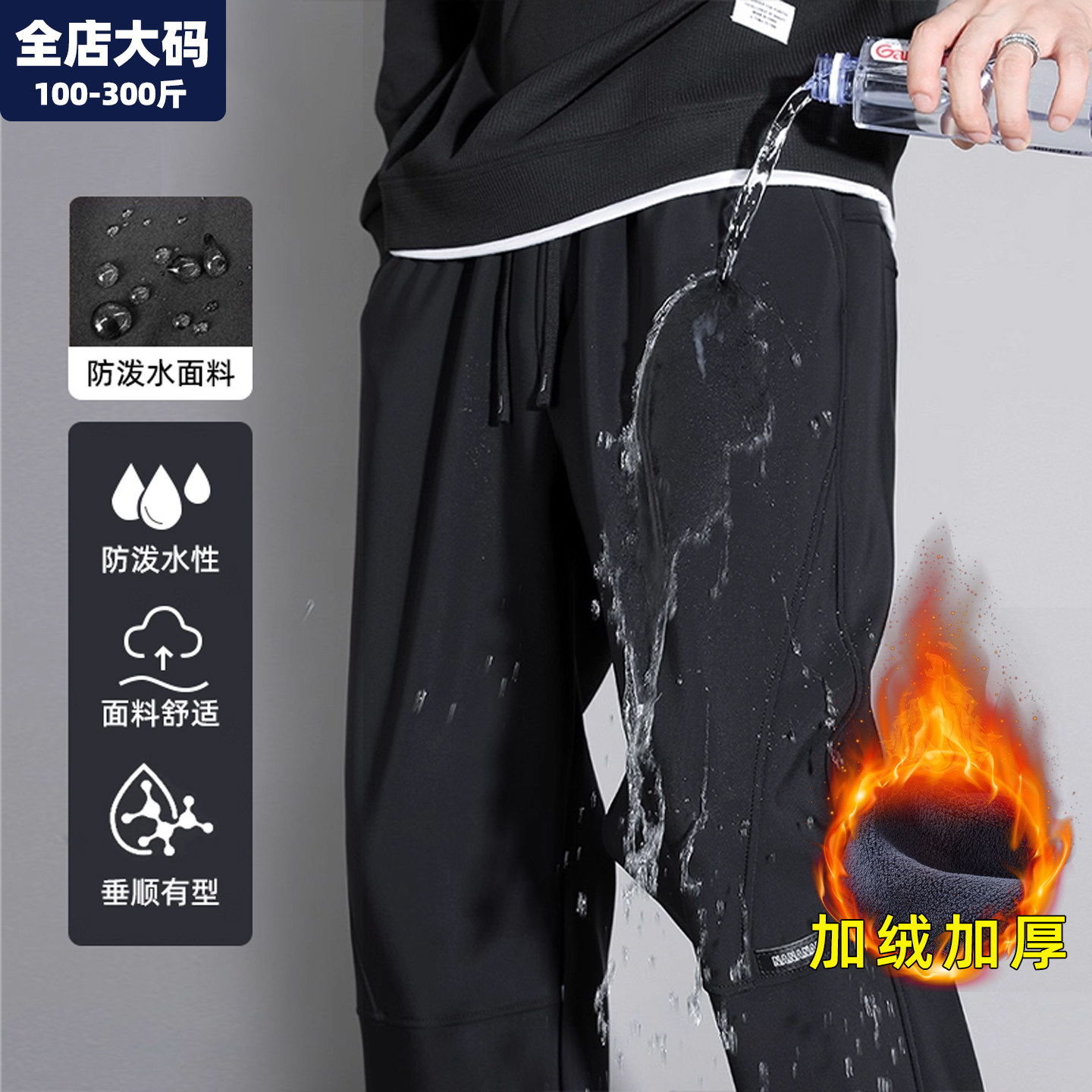 冲锋裤男冬季保暖加绒加厚防水直筒宽松长裤胖子加肥加大大码男装