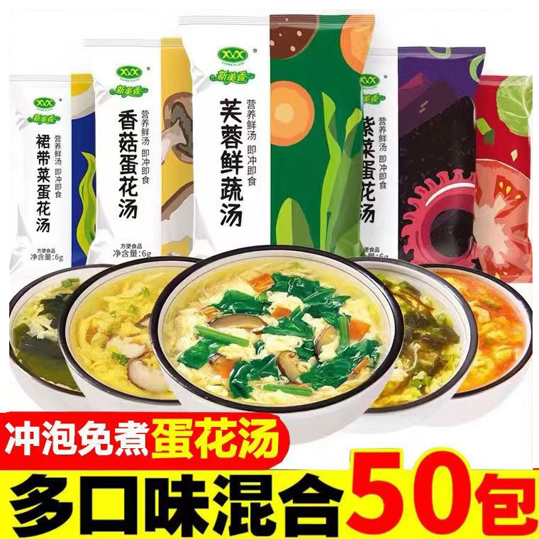 新美香速食汤50袋芙蓉鲜蔬汤速溶汤料包冲泡紫菜汤番茄菠菜蛋花汤