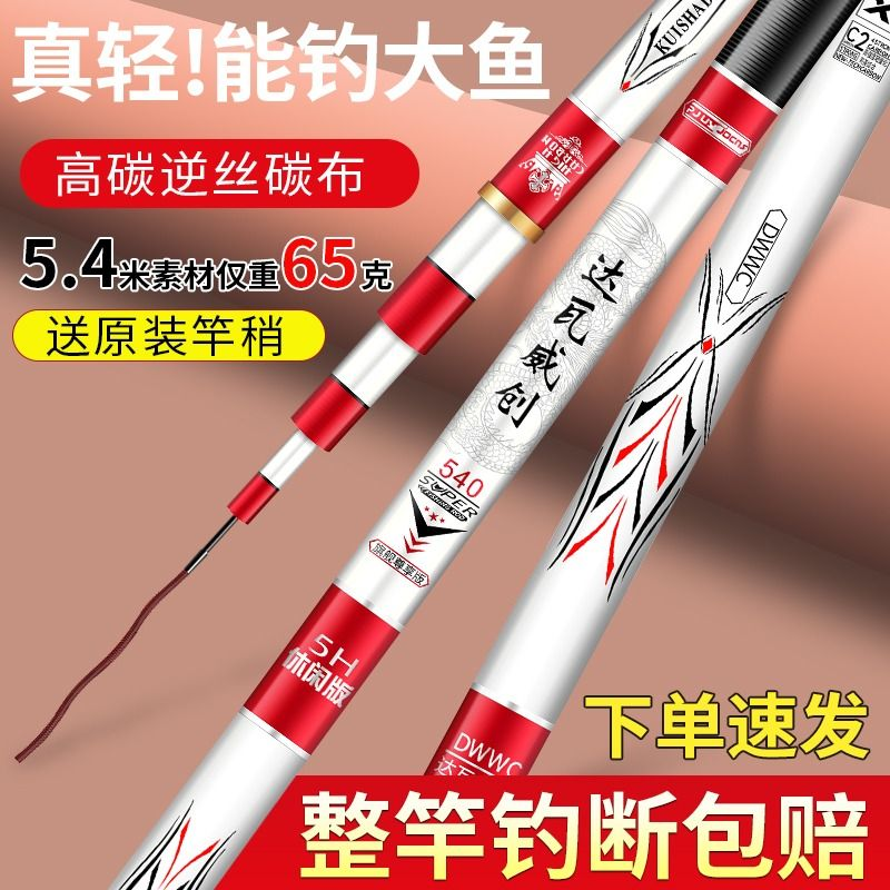 5.4米台钓竿千川正品碳素鱼竿手竿超轻超硬6H19调轻量大物钓鱼竿