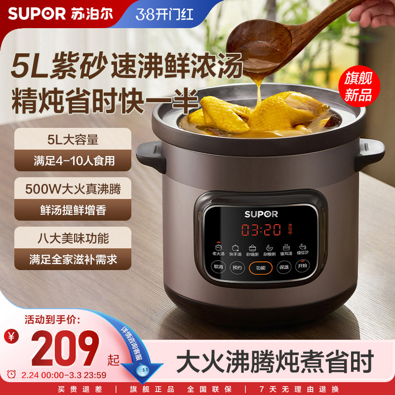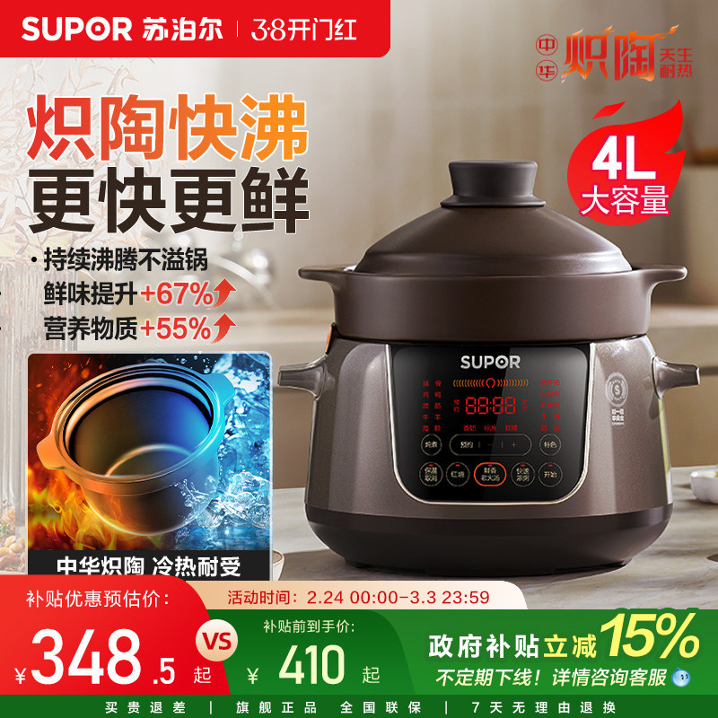 苏泊尔快炖电炖锅煲汤锅紫砂电砂锅煲汤陶瓷炖汤自动大容量可预约