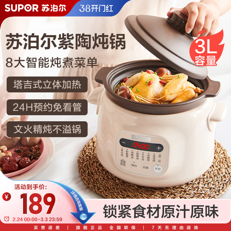 苏泊尔电炖锅电砂锅紫陶煲汤锅炖盅智能全自动陶瓷炖锅家用大容量