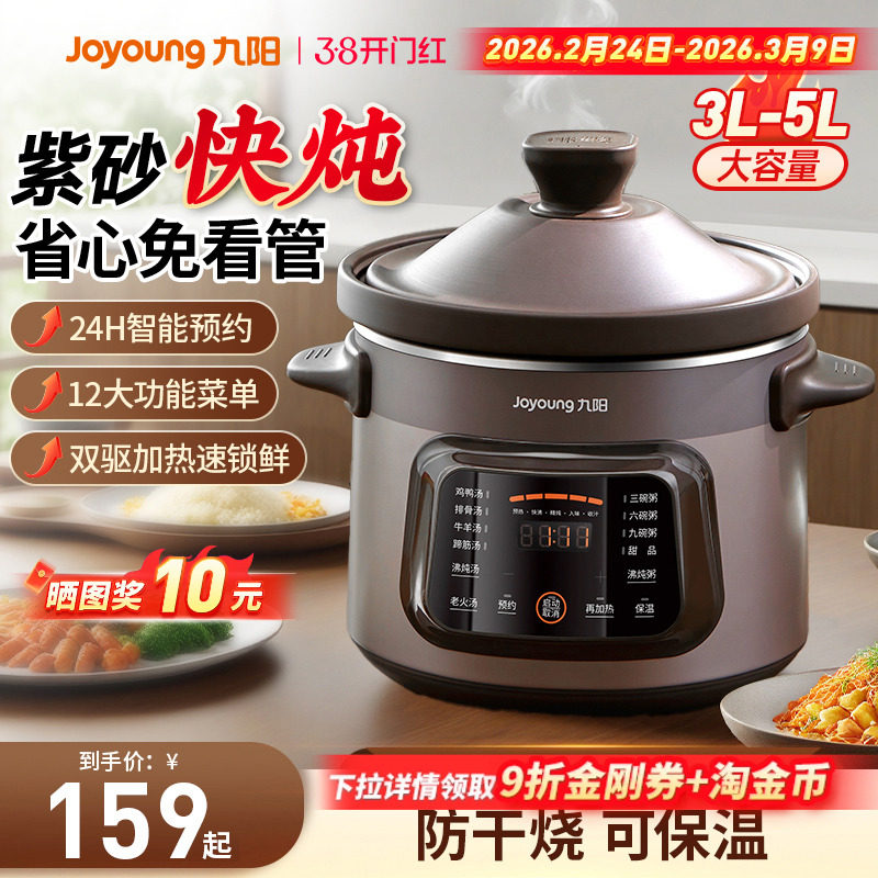 九阳电炖锅煲汤家用全自动煮粥锅电砂锅多功能紫砂锅正品2026新款