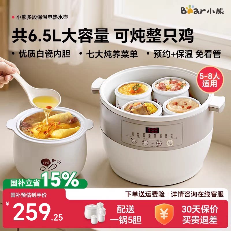 小熊电炖锅炖盅隔水炖家用全自动炖汤煲汤锅大容量多功能陶瓷内胆