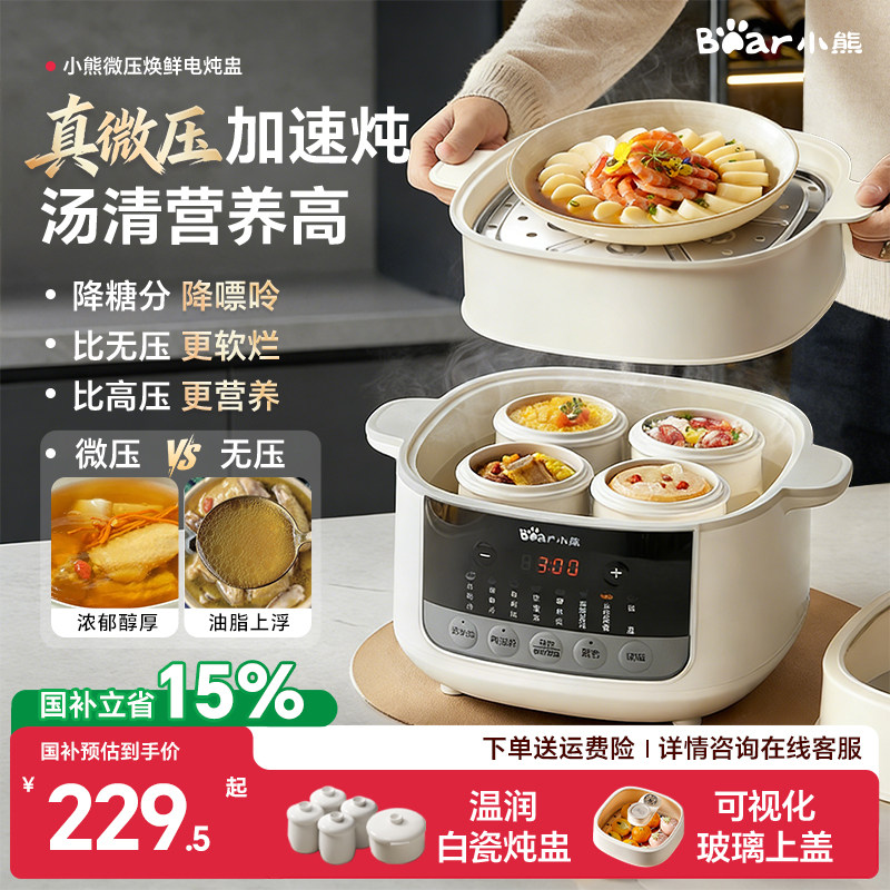 小熊电炖锅全自动炖盅隔水炖家用微压煲汤婴儿辅食锅陶瓷蒸锅一体