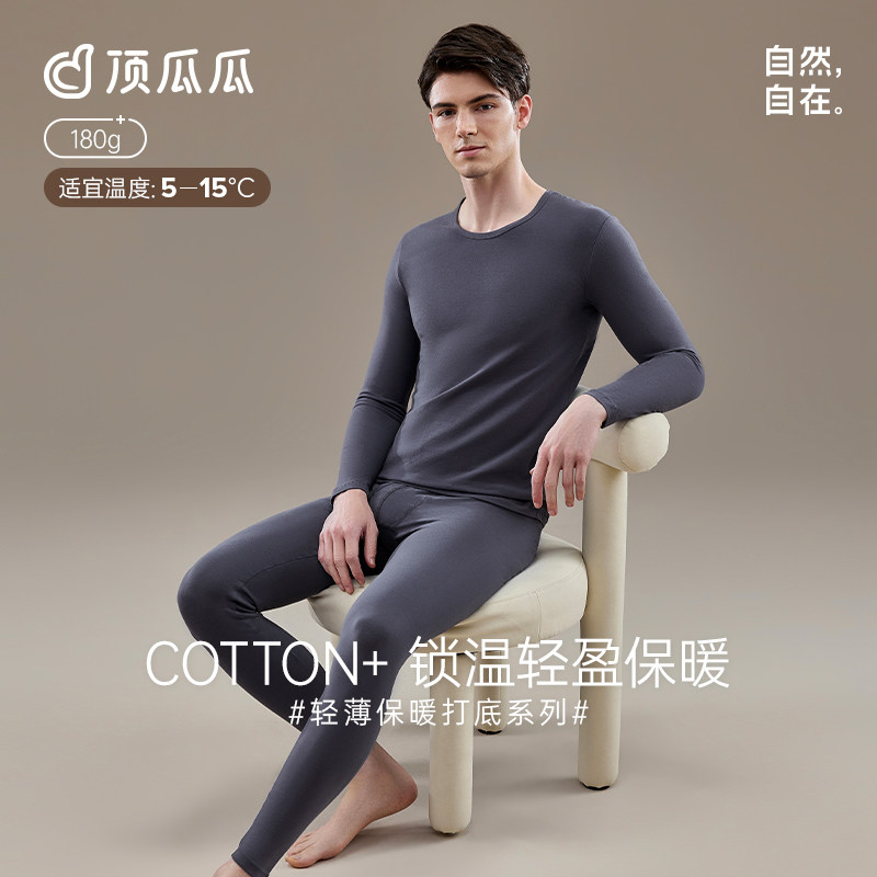 顶呱呱纯棉保暖内衣男士圆领顶瓜瓜秋衣秋裤套装青年春秋薄款打底