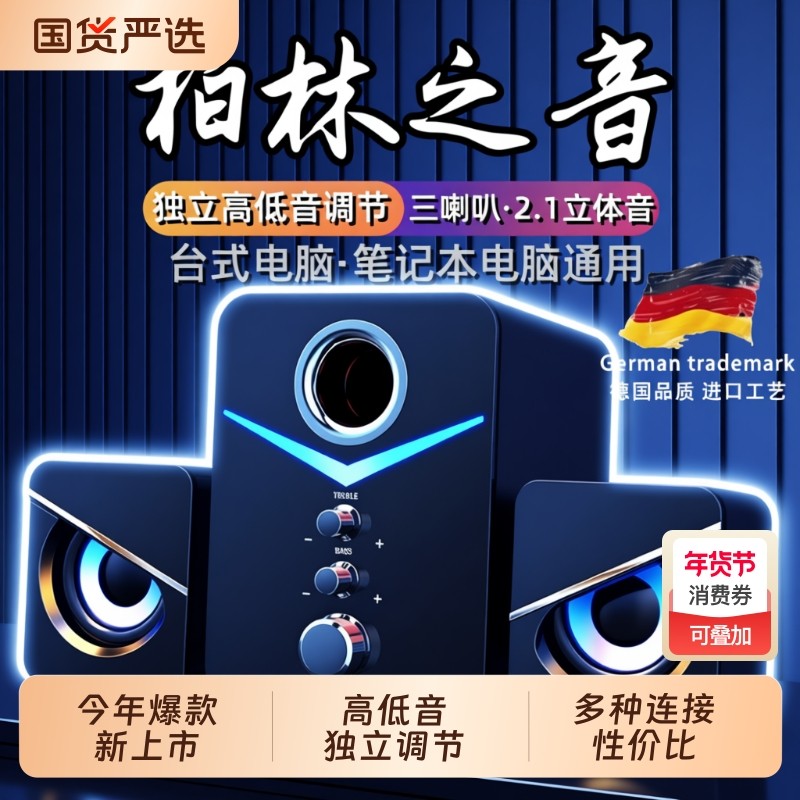 柏林之声音响电脑台式家用有线usb超重低音炮蓝牙音箱笔记本桌面