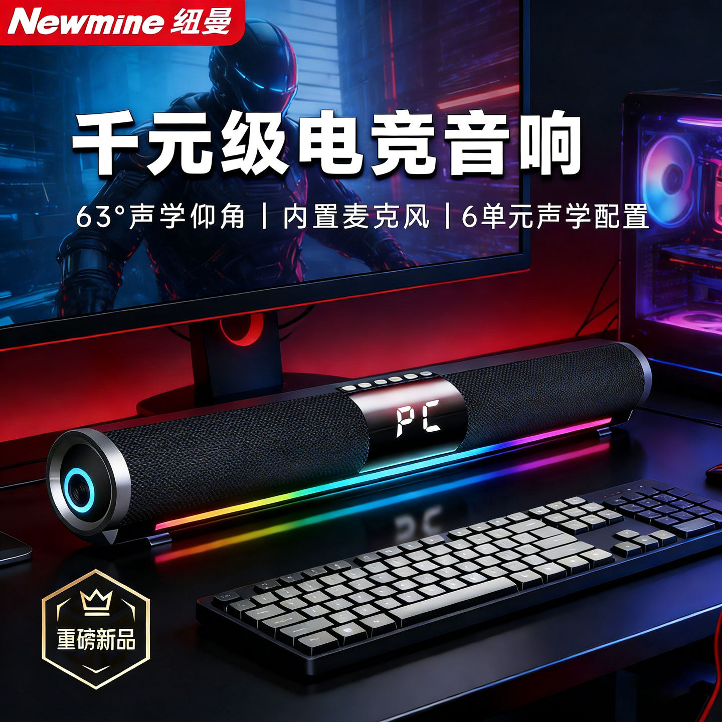 纽曼V8音响电脑台式家用麦克风一体桌面蓝牙音箱电竞游戏2026新款