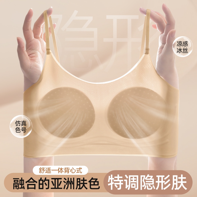 幸棉粉底液隐形无痕无钢圈大胸显小胸聚拢文胸无尺码背心式内衣女