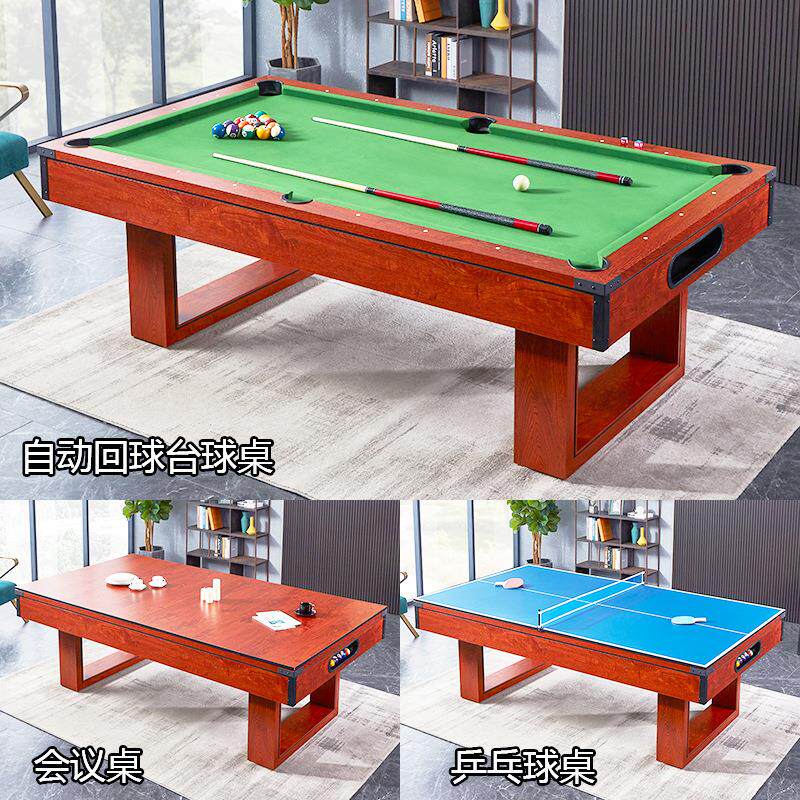 成人台球桌美式多功能室内黑八桌球台自动回球三合一乒乓桌会议桌