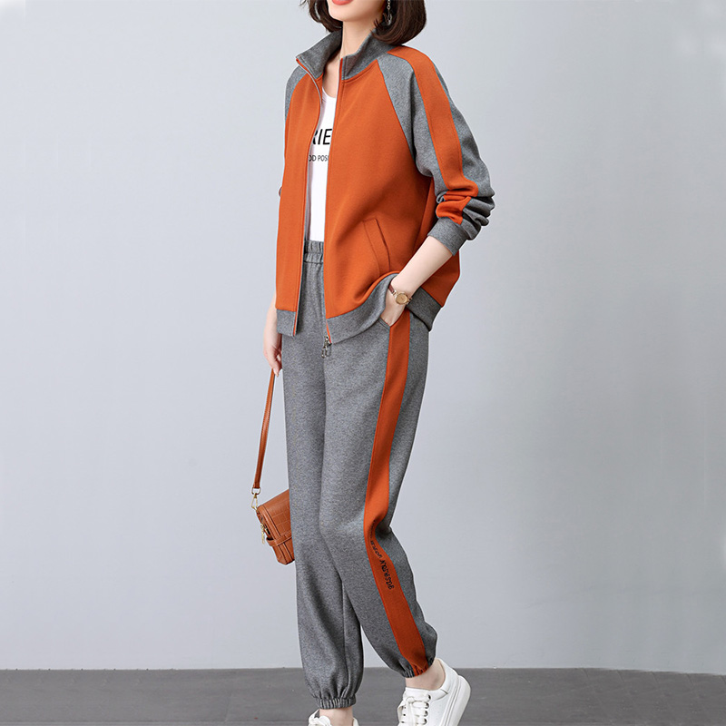 2025春秋运动服套装女时尚立领长袖外套休闲跑步中年妈妈装三件套