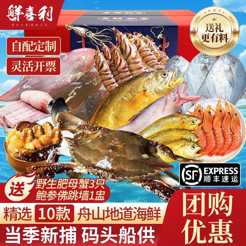 舟山海鲜礼盒年货大礼包鲜活冷冻东海水产团购送长辈梭子蟹大黄鱼