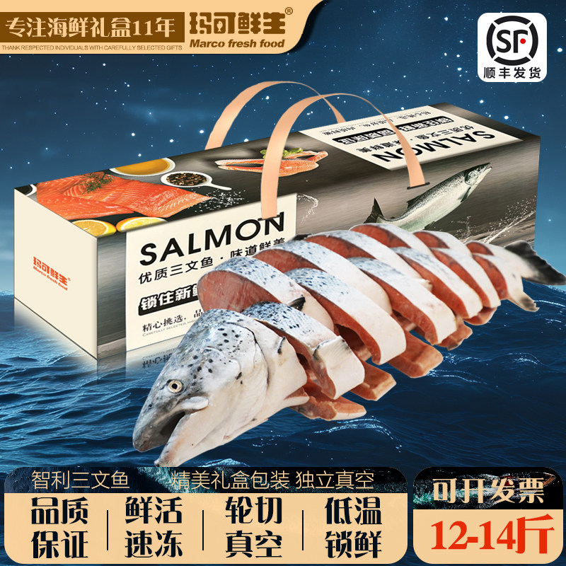 玛可鲜生 智利三文鱼礼盒 轮切三文鱼扒帝王鲑海鲜礼盒年货大礼包