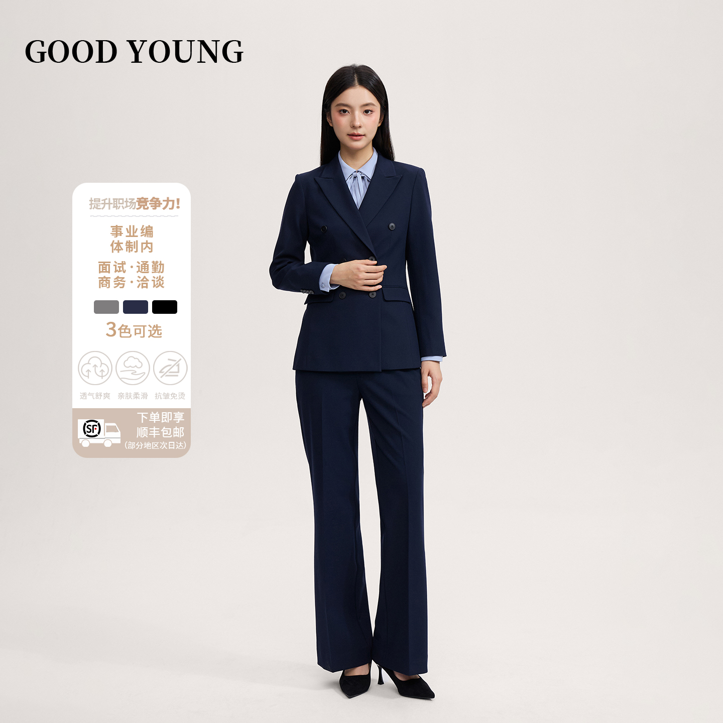 GOOD YOUNG双排扣套装女职业正装考公考编教资面试修身显瘦西装女
