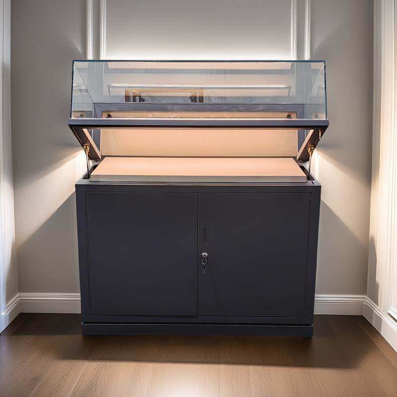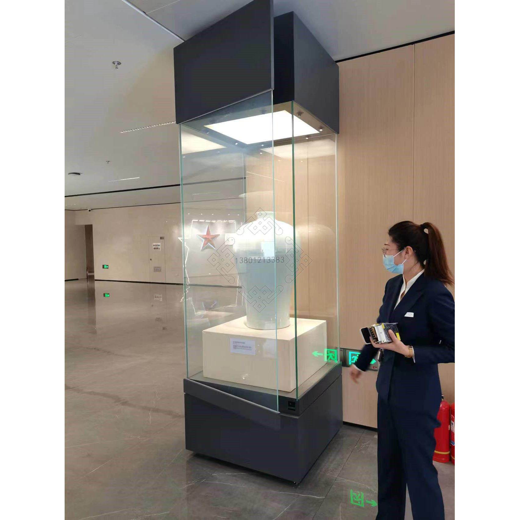 博物馆展柜古董字画展示柜定制金属烤漆柜台液压升降门防爆玻璃柜