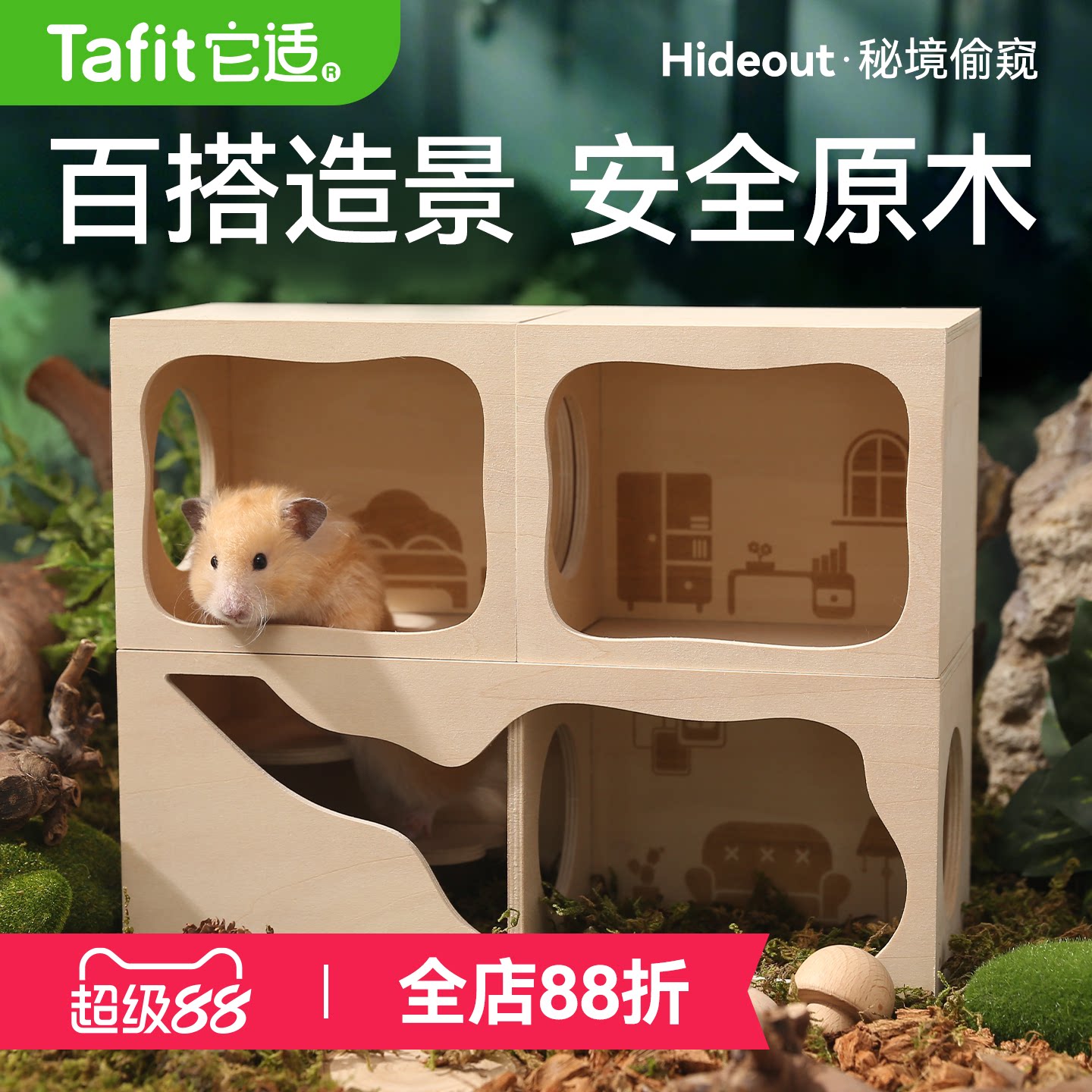 它适秘境偷窥仓鼠窝小房子躲避屋过春夏夏季保暖睡窝金丝熊窝木屋