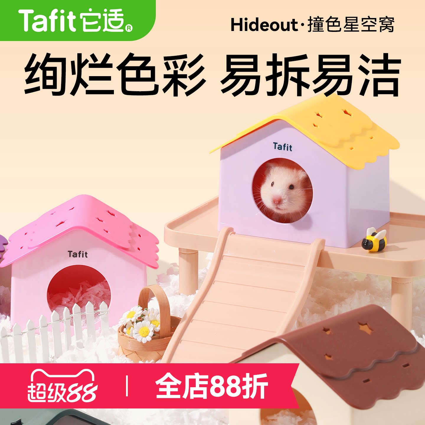 它适撞色星空窝小仓鼠窝躲避屋金丝熊夏天降温睡窝小房子造景用品