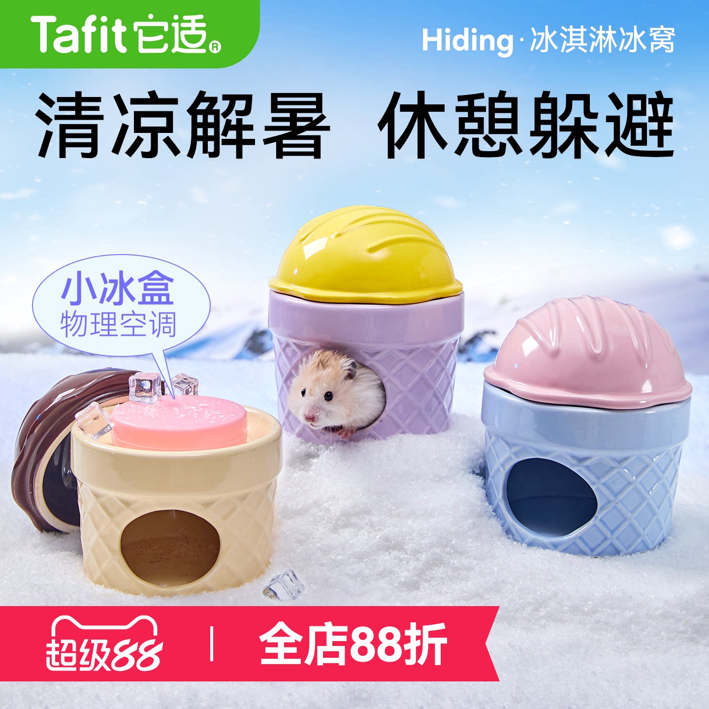 它适冰淇淋仓鼠陶瓷冰窝冰屋金丝熊躲避屋房子夏天季降温造景用品