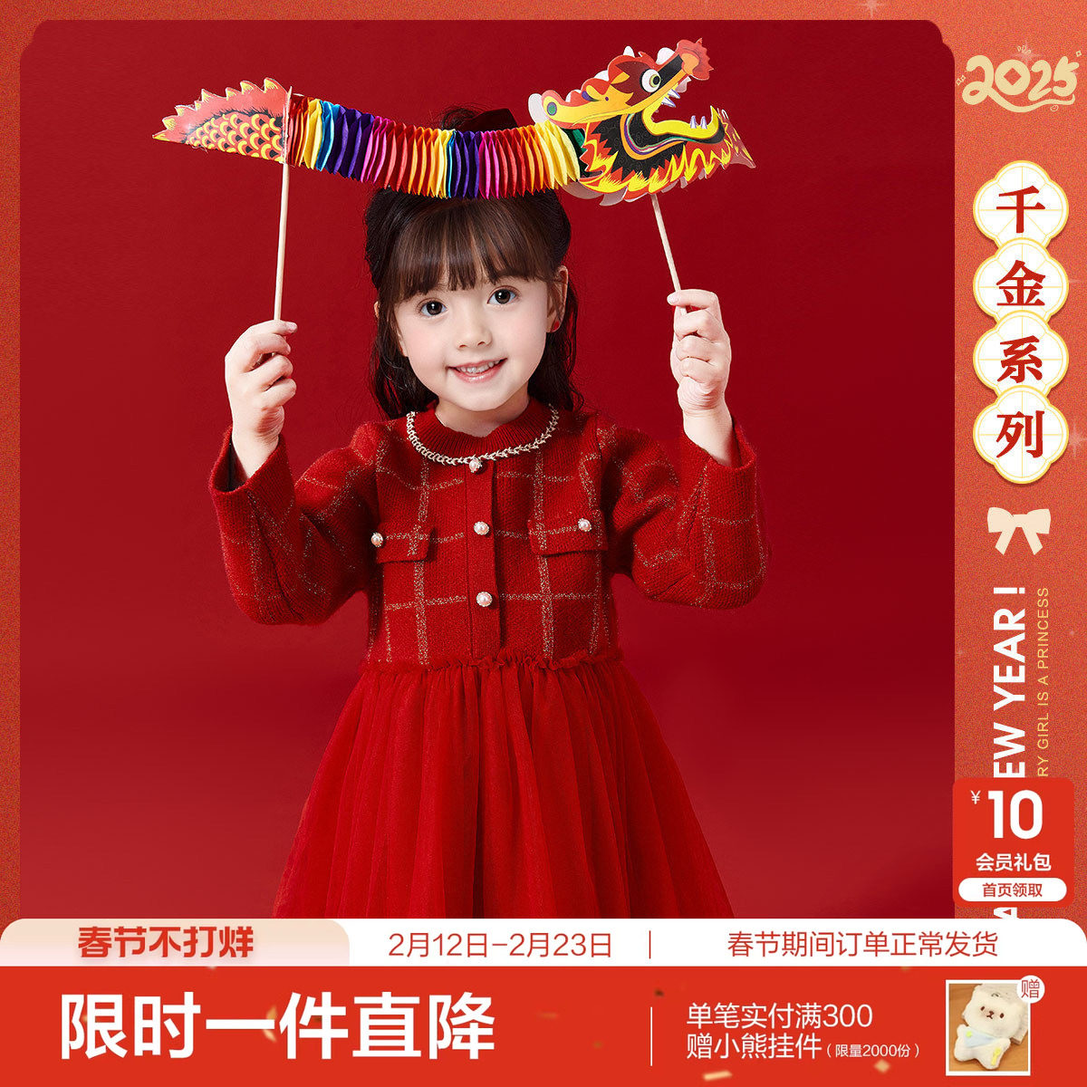 【裙子合集】女童连衣裙宝宝红色公主裙衣服礼服冬裙儿童新年冬装