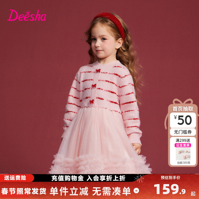 戴维贝拉女童毛衣连衣裙2026新款儿童春装礼服裙子宝宝网纱公主裙