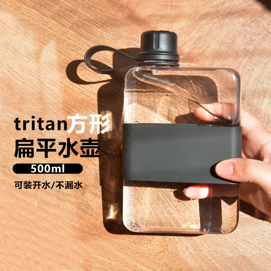 简约小巧扁方形水壶户外便携随手杯学生小容量塑料水杯带杯套防摔