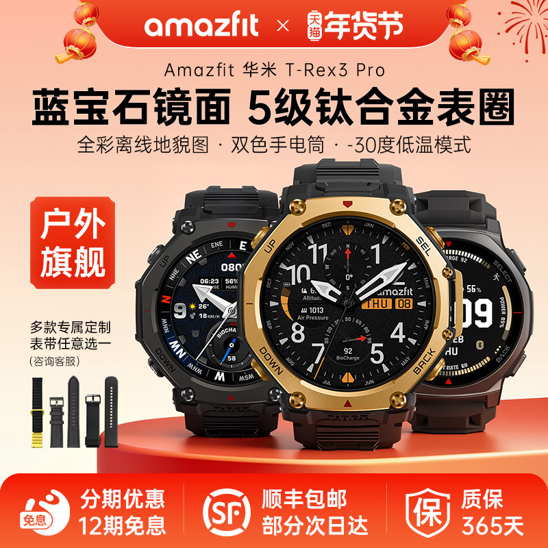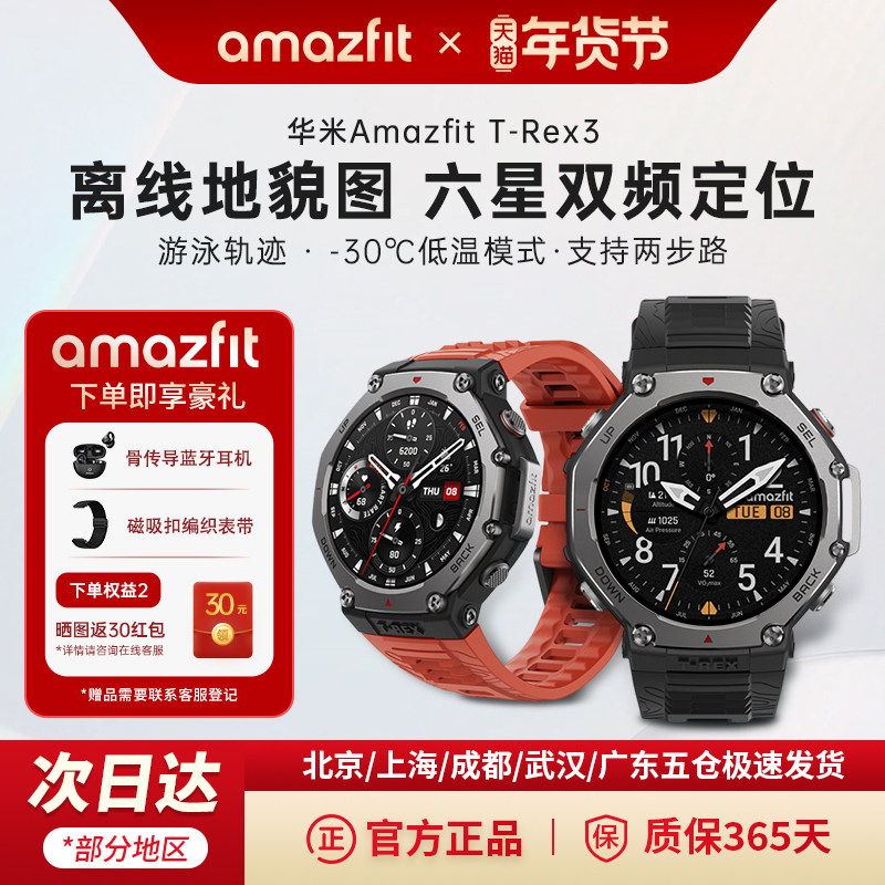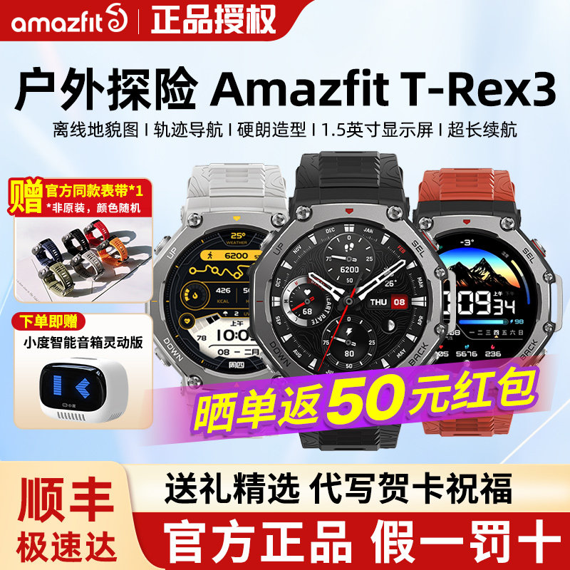 新品amazfit华米T REX 3 PRO智能运动手表专业户外骑行越野跑步登山潜水手表双频多星GPS定位48mm宽智能手表