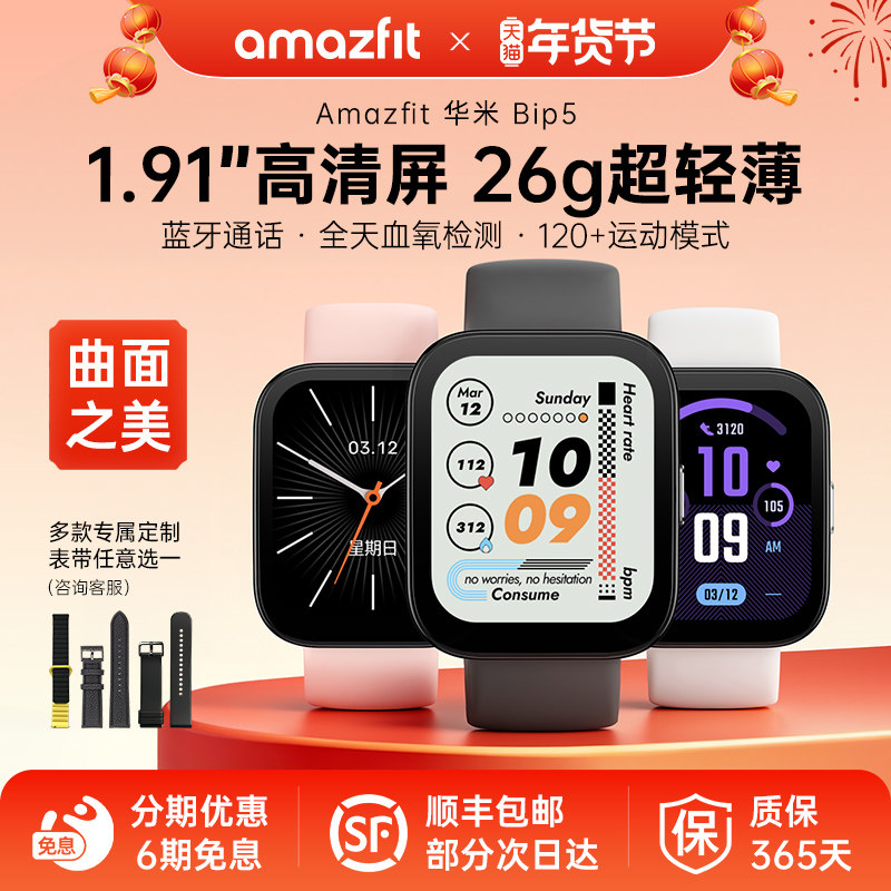 Amazfit华米Bip 5 智能手表46mm运动健康监测男女款蓝牙通话心率血氧睡眠检测超大屏长续航GPS定位多功能腕表