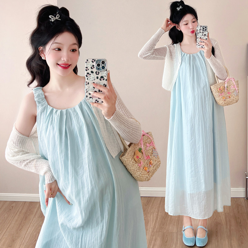 孕妇装夏装长袖防晒衣夏季雪纺背心裙孕妇套装连衣裙两件套裙子夏