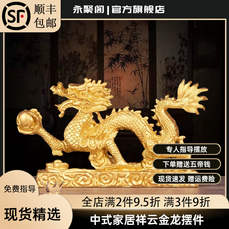 祥龙聚宝招财龙生肖龙摆件客厅办公室装饰工艺品新年店铺开业礼物