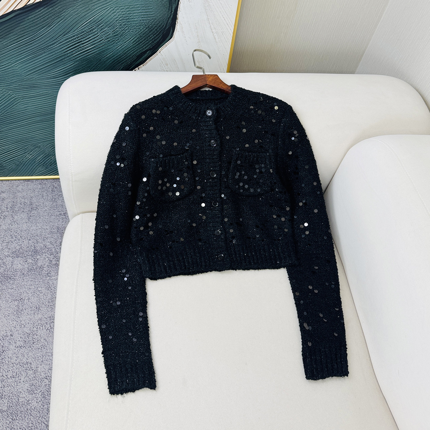 鸭毛南油女装小香风黑色亮片开衫女短款千金风毛衣秋冬款针织开衫