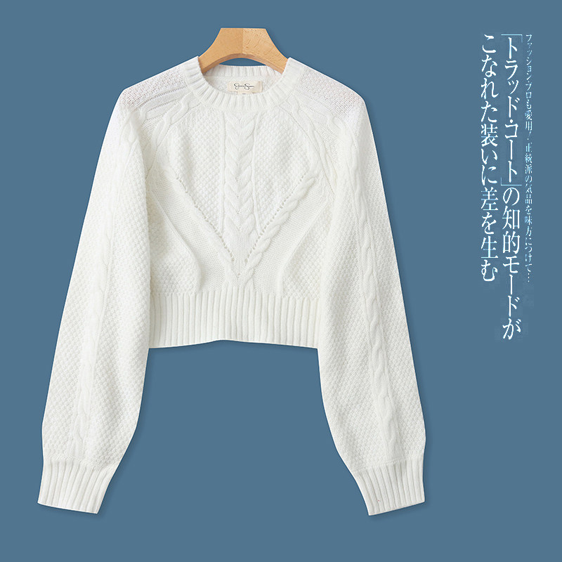 II2595外贸欧美小香风女生短款毛衣冬款圆领宽松时尚减龄针织衫