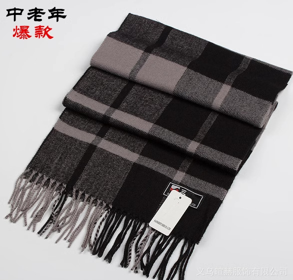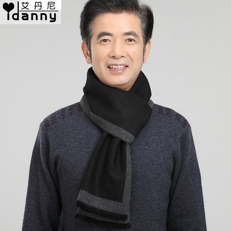 中老年男士商务围巾秋冬老年人仿羊绒围脖中年保暖老人围巾男冬季