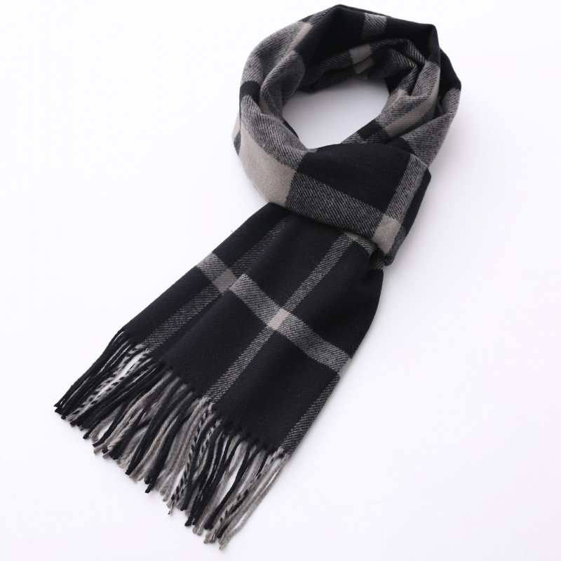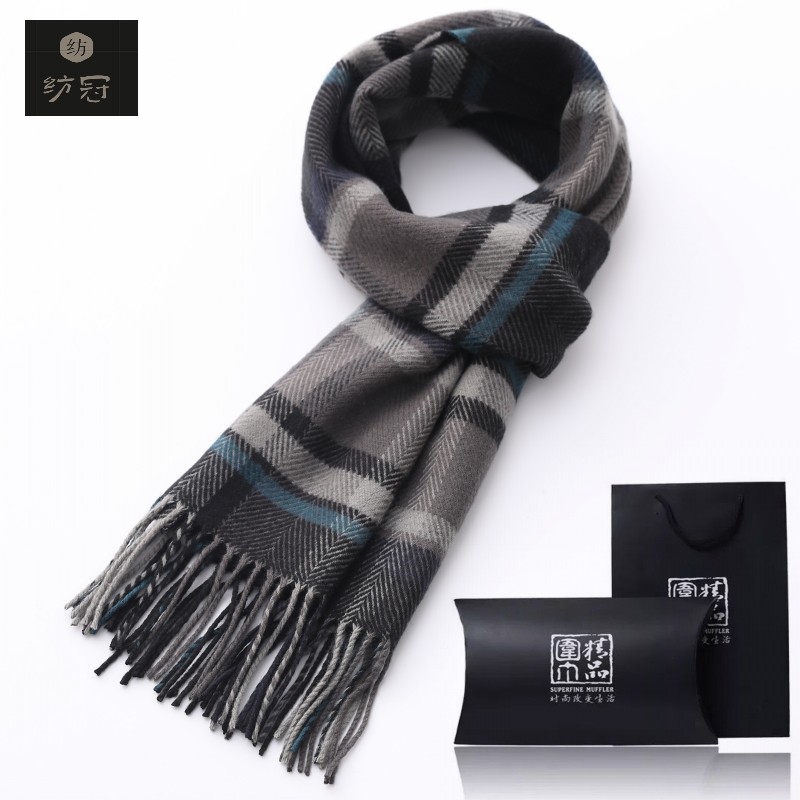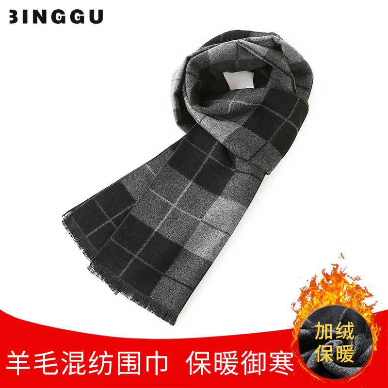 羊毛围巾男冬季保暖高档黑灰色中老年人男士学生生日礼物老人围脖