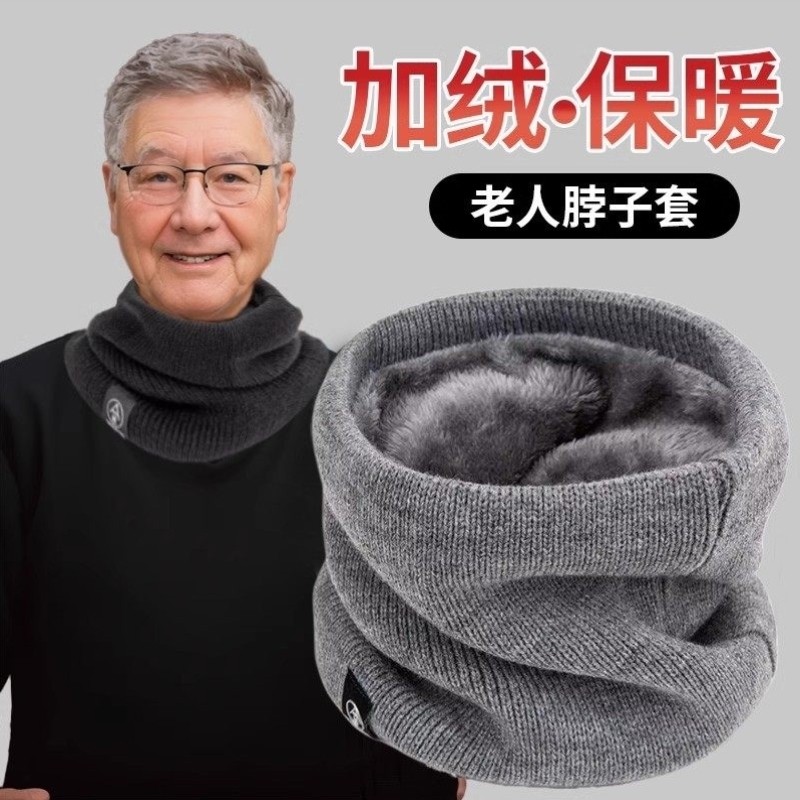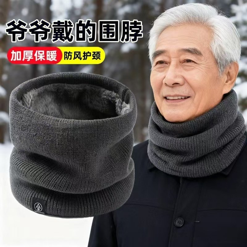 老人脖套男冬季加绒围脖护颈2025新款保暖厚围巾脖套防寒男士面罩