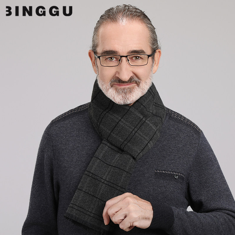 老人男士围巾爸爸中老年人爷爷老头秋冬休闲格子加厚围脖保暖冬季