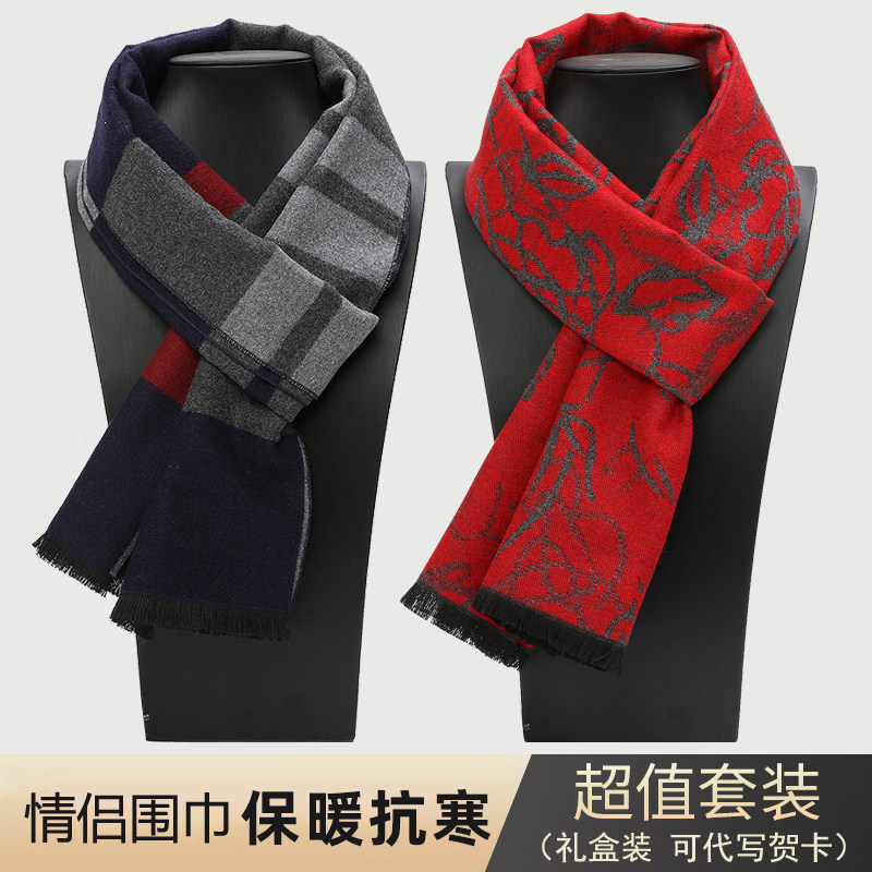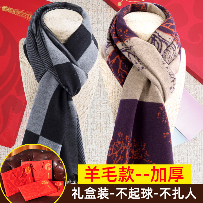 男士围巾男冬季羊毛加厚中老年老人中年爸爸款爷爷礼盒送长辈围脖