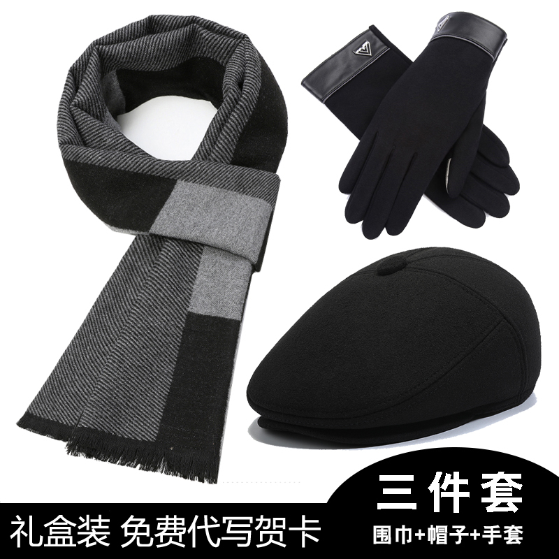 中老年人帽子围巾手套套装三件套两件套男士爸爸爷爷老人保暖冬季