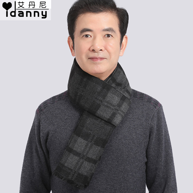 中老年人男士围巾冬季老人爸爸爷爷老头秋冬休闲加厚羊毛保暖围脖