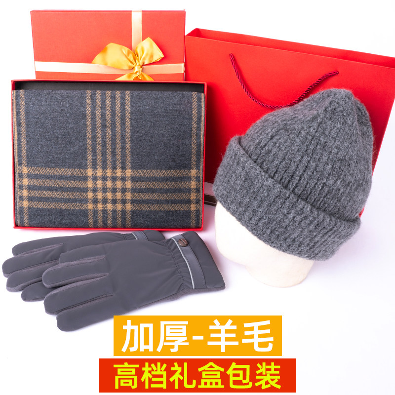 男士围巾冬季中年中老年人老人帽子爷爷爸爸手套秋冬季保暖圣诞节