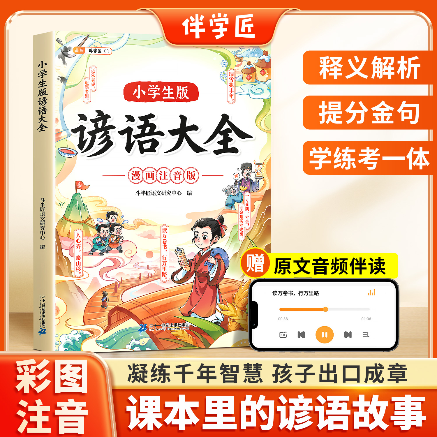 伴学匠小学生谚语故事大全漫画一年级二年级阅读课外书注音版儿童拼音故事书藉6岁以上快乐读书吧三年级下册阅读课外书籍精选正版
