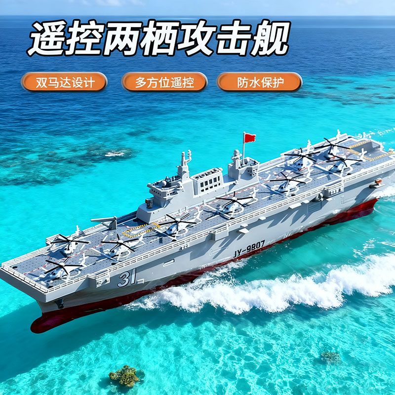 可下水遥控船航空母舰大型仿真军舰遥控模型男孩电动战舰儿童玩具