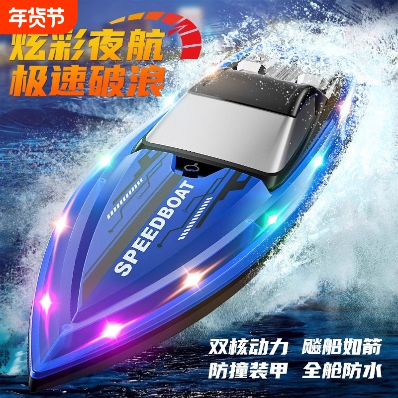 新款2.4g高速快艇儿童水上玩具遥控船赛艇充电电动双驱动灯光