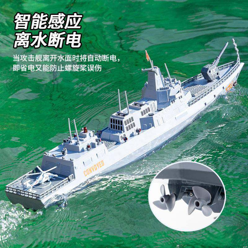 2.4G仿真驱逐舰模型夏季新款可喷水男孩户外玩具遥控船礼物礼品